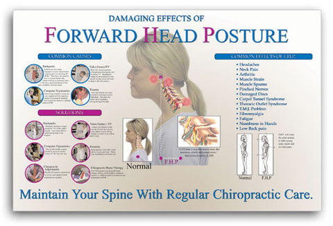 Display this large poster in your practice and you can finally show how FHP is linked to headaches, TMJ, Neck pain, Low back pain, Fibromyalgia, Carpal Tunnel Syndrome, and pinched nerves! This resource explains the damaging effects of FHP and strategically reveals the importance of chiropractic care for correction and prevention of FHP. This is the first and most complete poster in the chiropractic profession to explain FHP. Order the companion FHP brochures for patients to take home and share the information with friends and family.