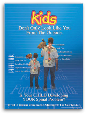 Here’s an education tool that compels patients to think about having their children examined without you broaching the subject. Patients will grasp the concept that health problems — including spinal alignment — run in the family. They will understand that their kids should be checked to see if they have the same problem for which the parent is being treated. Parents want to protect their kids from the problems they have, and this poster can be the catalyst to move them to action.